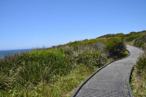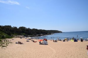 Heute geht es mit dem Auto noch ein Stückchen weiter. Der nächste Strand im Süden Sydneys ist Malabar Beach. Wir planen keinen Aufenthalt, möchten ihn aber wenigstens mal anschauen. Sehr hübsch, ruhig gelegen, mit schöner Umfeldgestaltung, riesigem überdachten Spielplatz und zum ersten Mal mit einer Zuwegung zum Wasser für Kinderwagen oder Rollstuhlfahrer. Er liegt geschützt in einer tiefen Bucht und bietet sich daher vor allem für Familien an. Nett, aber was sollen wir hier mit dem Surfbrett anfangen? Ok, richtig schwimmen kann man hier natürlich. Maybe … Wir werden berichten.