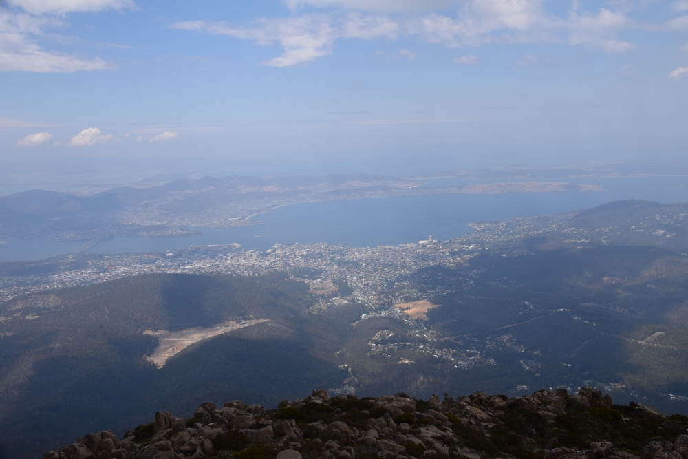 Unser car breakdown beeinflusst den Verlauf unserer Reise deutlich. Die Beschaffung eines Mietwagens, diverse Werkstattkontakte und das Abwägen sämtlicher Möglichkeiten samt zugehöriger Kosten füllt einen Großteil unseres planmäßig letzten Urlaubstages auf Tasmanien. Schweren Herzens entscheiden wir uns dafür, Bonnie mit seinem schwerwiegenden Motorschaden auf der Insel zurückzulassen. Was vom Tage bleibt nutzen wir für einen zweiten Anlauf, den Gipfel des Mount Wellington zu bezwingen. Der Blick auf Hobart ist zwar nicht ungetrübt, aber trotzdem sehr schön.