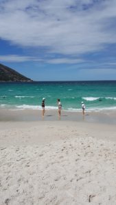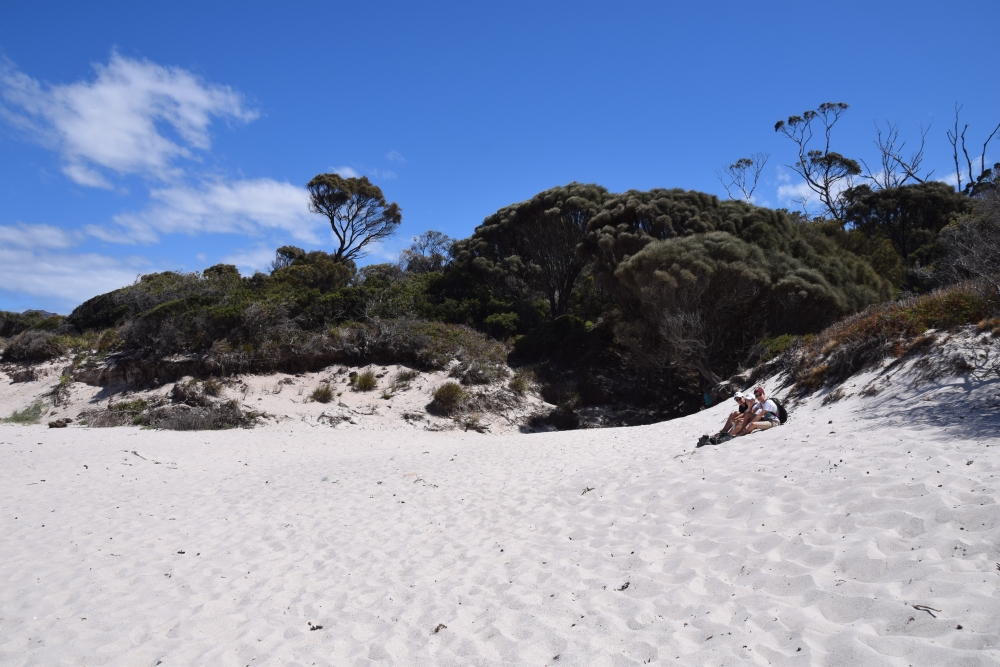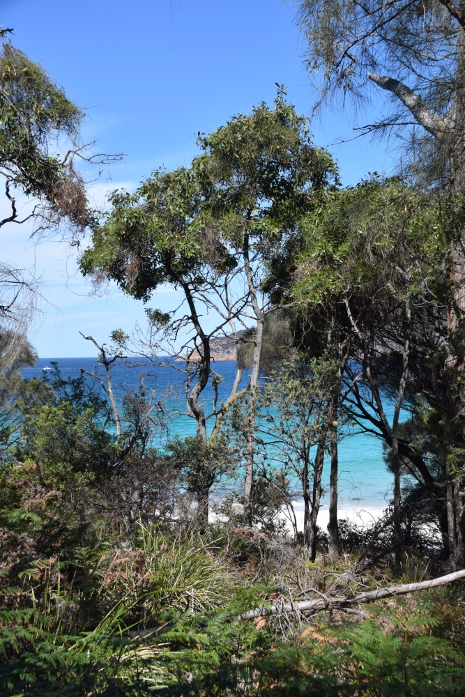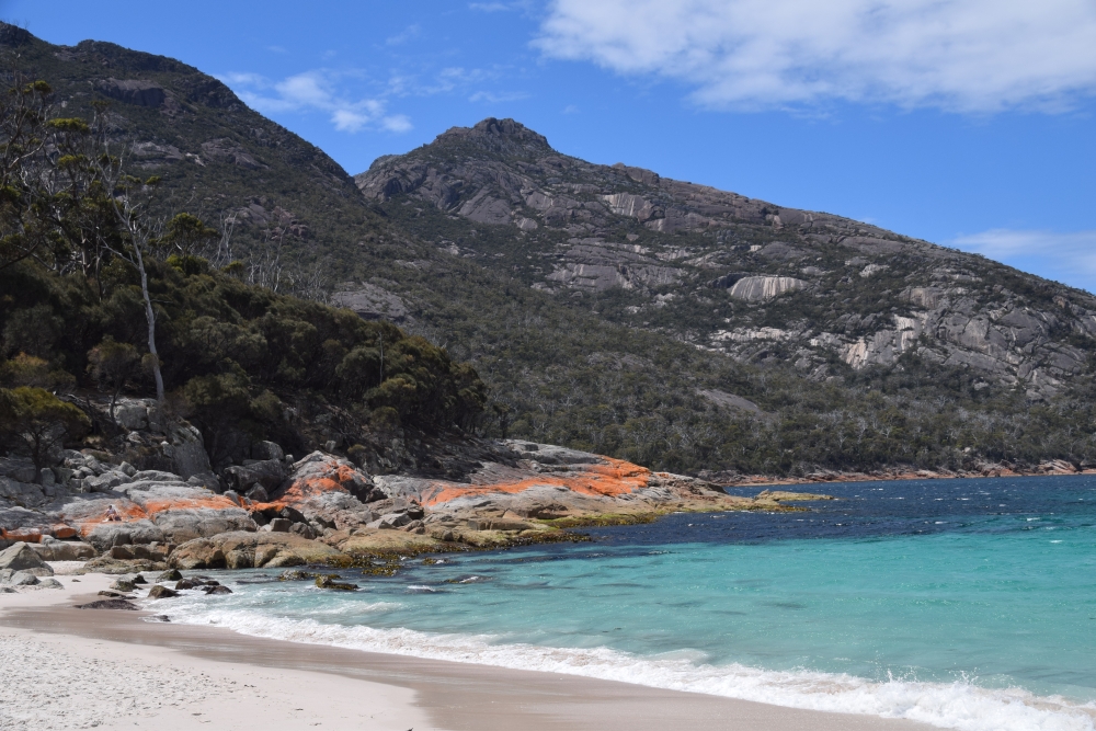 Und dann schließlich Wineglass Bay, von der nicht ganz geklärt ist, warum sie so heißt. Vielleicht wegen der Form, vielleicht wegen des glasklaren Wassers, vielleicht weil sich das Wasser zu Walfangzeiten rot wie Rotwein verfärbt hat.