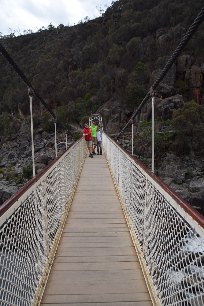 Und wieder läuft nicht alles nach Plan. Wegen eines Problems bei der Verlängerung der Mietwagennutzung müssen wir zunächst zur Zentrale nach Launceton. Na gut. Dann schauen wir uns dort halt die historische Hängebrücke über die Cataract Gorge an.