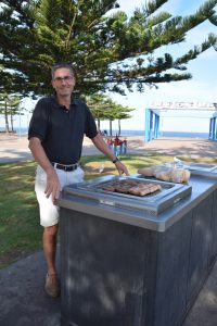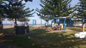 Den stationären Gasgrill in Strandnähe kann man übrigens einfach so nutzen. Wir haben lange geschaut, wie man wem wie viel für die Nutzung bezahlen muss. Überraschend undeutsche Erkenntnis, die uns ein hilfsbereiter Einheimischer bestätigt: es kostet nichts. Man drückt auf ein Knöpfchen, die Edelstahlplatten werden heiß und man kann loslegen. Von dieser Sorte gibt es übrigens zahlreiche an verschiedensten Picknickgrounds, von denen es hier ebenfalls jede Menge gibt. Sitzgruppe und gute Aussicht inklusive. Guter Service!