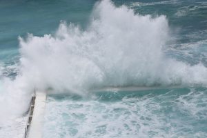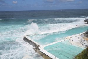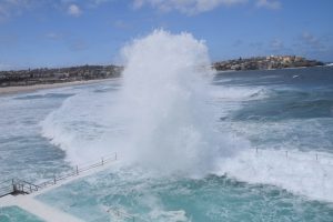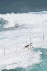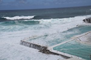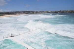 Gestern dann noch mal kräftiger Wind, hier am fast menschenleeren und ungewohnt surferfreien Bondi Beach. Ihr erinnert Euch an das schöne Freibad am Meer? Ich hätte stundenlang zuschauen können …