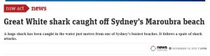 Zwischendurch eine Meldung, die wir erst mitbekommen, als am letzten Samstag ein Hai vor unserem Lieblingsstrand gesichtet wird. Am Montag zuvor hatten sie bereits einen „Man-Eater“ aus den Netzen vor derselben Bucht gefischt.